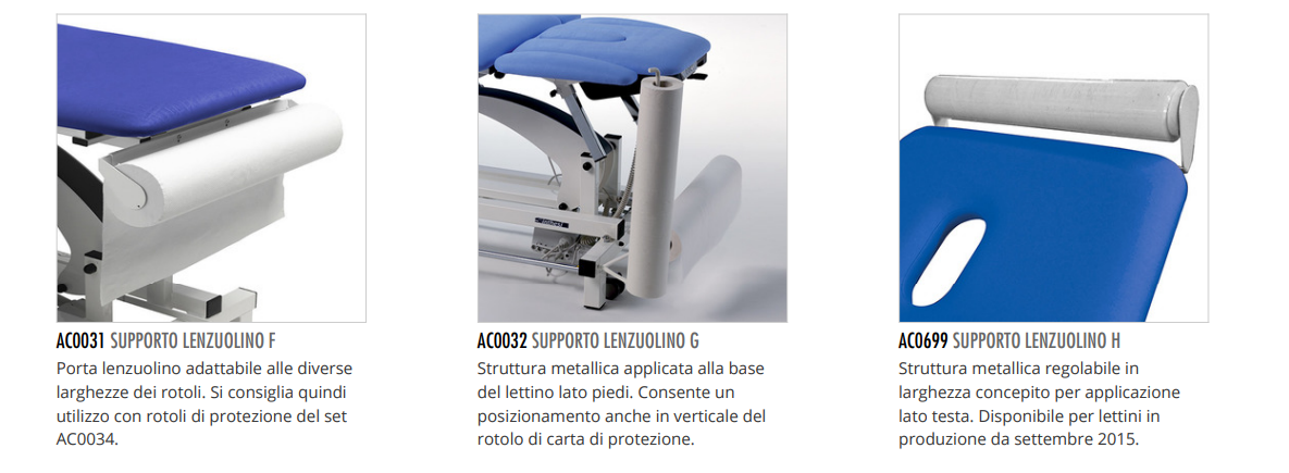Lettini da visita e trattamenti per terapia fisica ad una sezione mobile ed una sezione fissa.