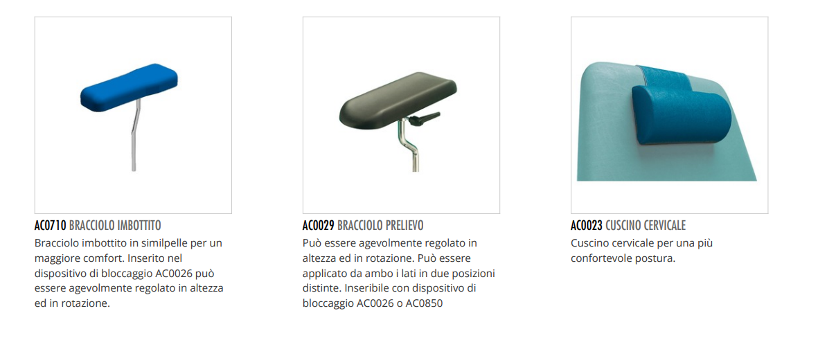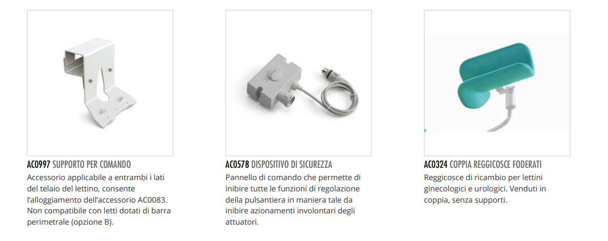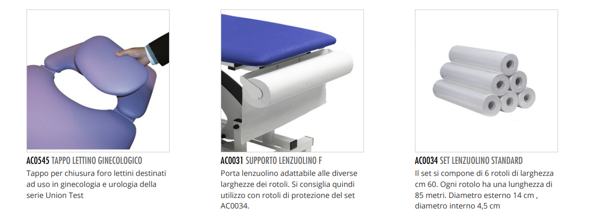Lettini polivalente a un motore per diagnosi e trattamenti indicati in ginecologia ed urologia disponibili con regolazione in altezza, idraulica o elettrica.
